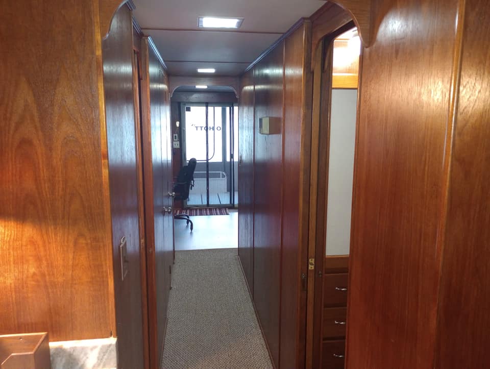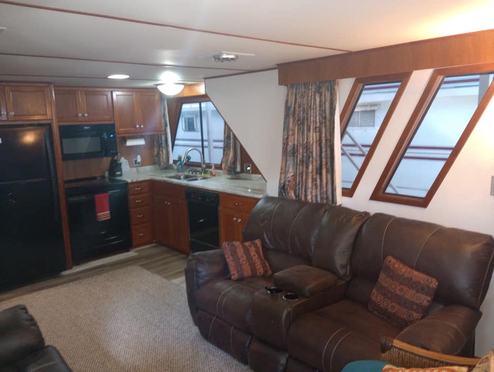 1990 Lazy Days 60′ widebody houseboat with 15′ beam and an all-aluminum hull. Powered by twin 454 Mercruiser engines and Brovo 2 outdrives, alongside a 12.5 KW Westerbeke generator.