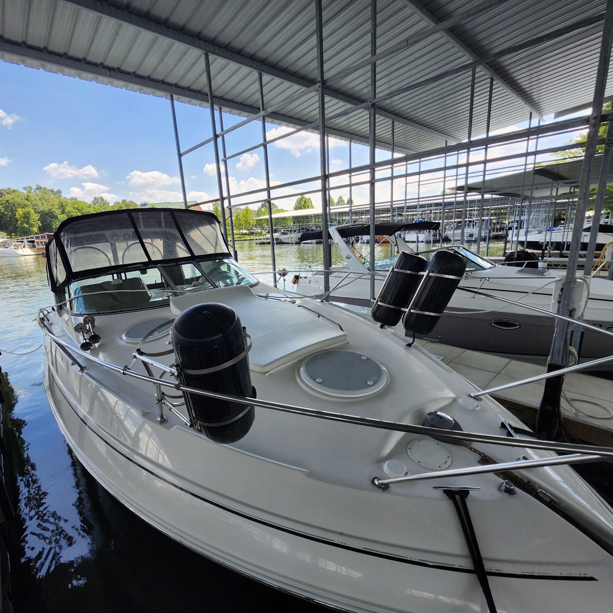 The vessel is currently located at Blue Turtle Bay Marina on Old Hickory Lake in Tennessee. The marina slip is transferable to the new owner, subject to marina approval. Please note that the boat does not include a trailer. Don’t miss your chance to own this turn-key cruiser at an exceptional value — boats in this condition with hours this low are hard to find.